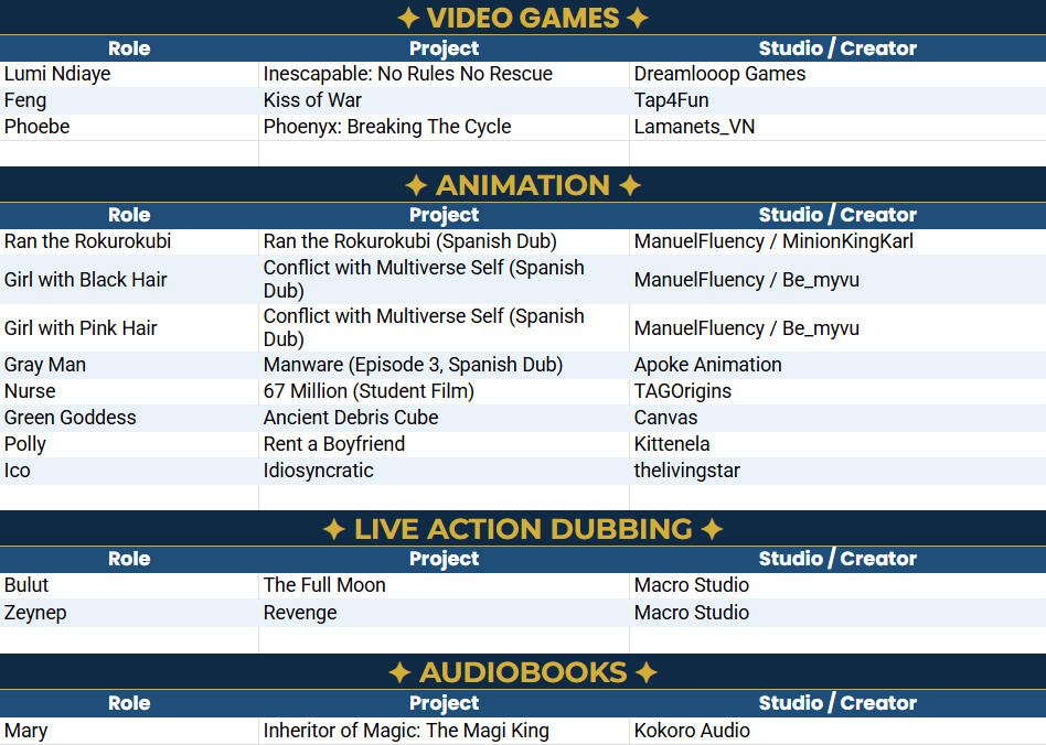 I'm Lumina, a nonbinary Mexican-American voice actor, digital artist, and streamer. Of course my actual name isn't Lumina, it is a pseudonym that I prefer to go by and be credited as. My name is Emilia and I prefer she/they pronouns.Since I was young, I began acting by doing theatre and was thinking for a while of being either an actor or stage actor. However, my interest in voice acting grew when my I developed my interest in anime and found out more about the dubbing industry. After graduating high school and entering college, I was able to pursue voice acting in 2021. Since then, I've been giving it my best and giving it my all in the projects I am in!Some hobbies that I have (besides gaming), are working out, working on cosplay props or outfits or sometimes just reading. Usually I do all that while listening to Youtube videos or podcasts. In general, I like to be creative and adore seeing the creativity of other people.My dream is to make a full time career out of voice acting in general, while also drawing and streaming. One goal at a time though, can't tackle all this at the same time I'll admit!